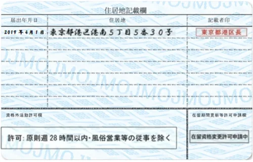 Ngay cả khi Thẻ Cư trú ghi “Không được phép làm việc” (Shūrō Fuka), nếu có nội dung được phép ghi ở “Mục ghi giấy phép hoạt động ngoài tư cách lưu trú” ở mặt sau, bạn vẫn được phép làm việc trong phạm vi đó. Trường hợp này thường xảy ra với sinh viên du học, cho phép họ làm thêm. Sinh viên du học có thể làm việc, điều mà về nguyên tắc là không được phép, bằng cách xin “Giấy phép hoạt động ngoài tư cách lưu trú”.